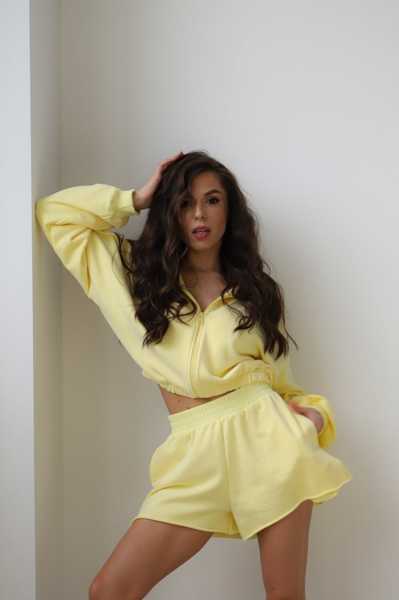 This relaxed zip-up hoodie, paired with easy-fit shorts or soft trousers, is your go-to for slow mornings or spontaneous city strolls.