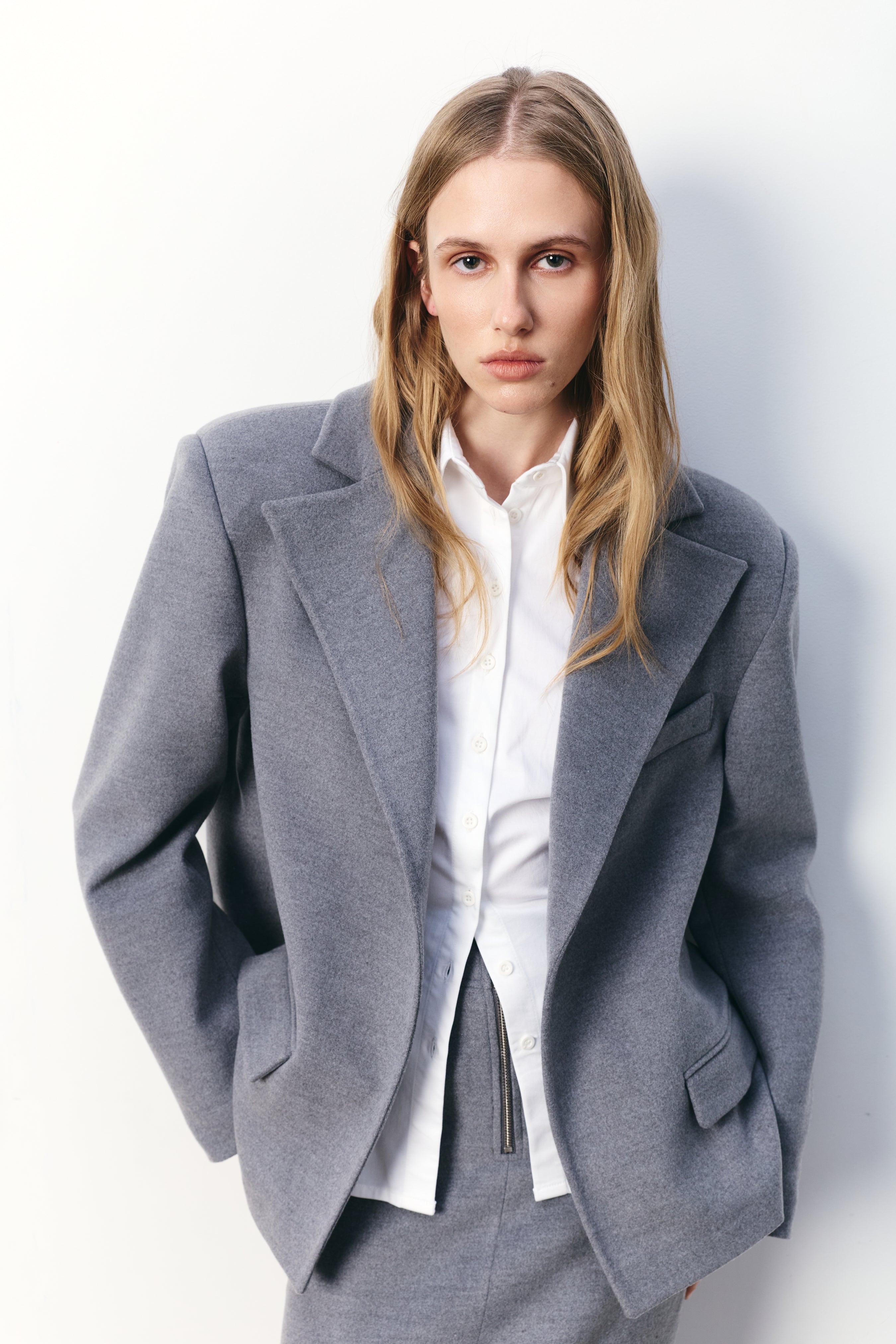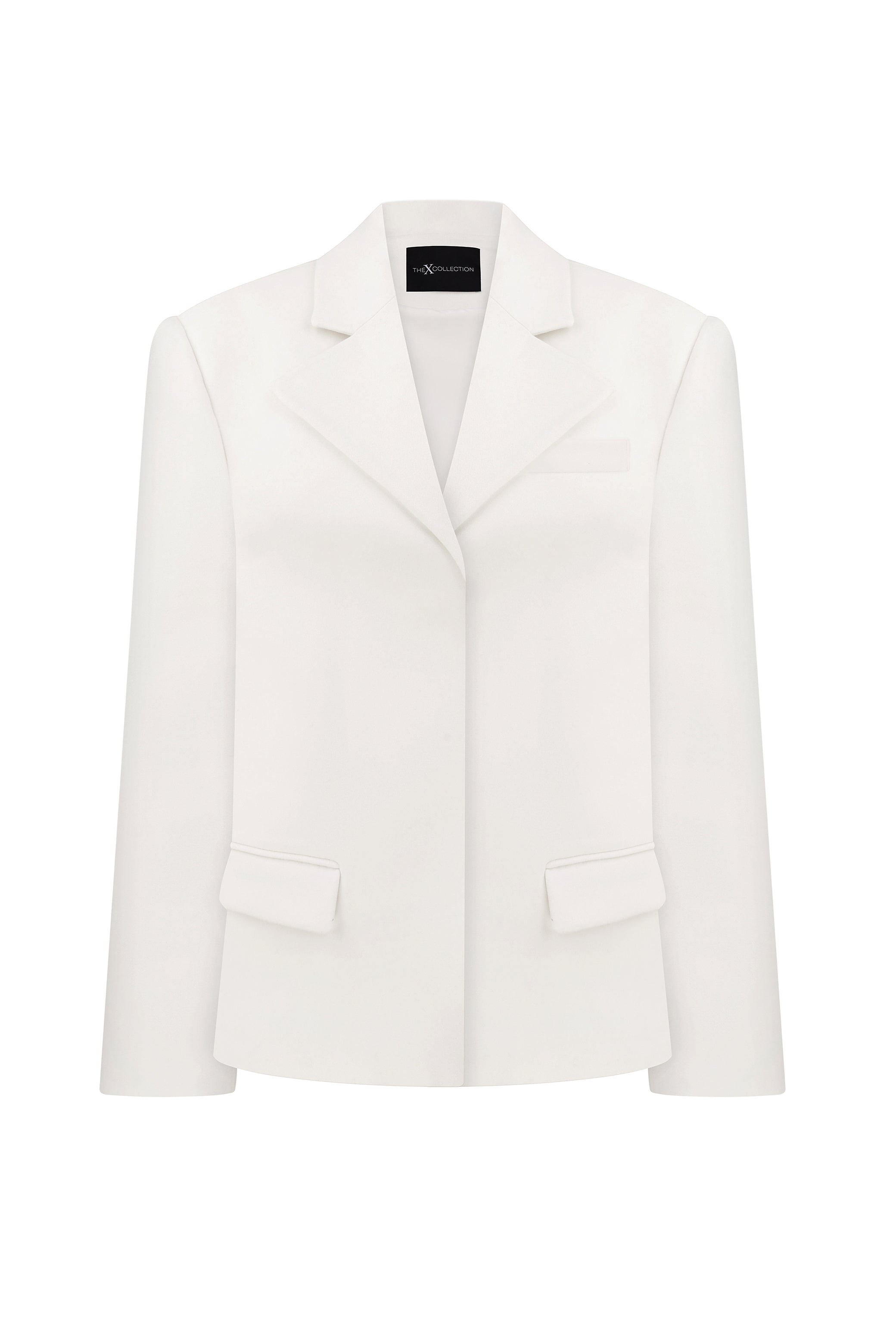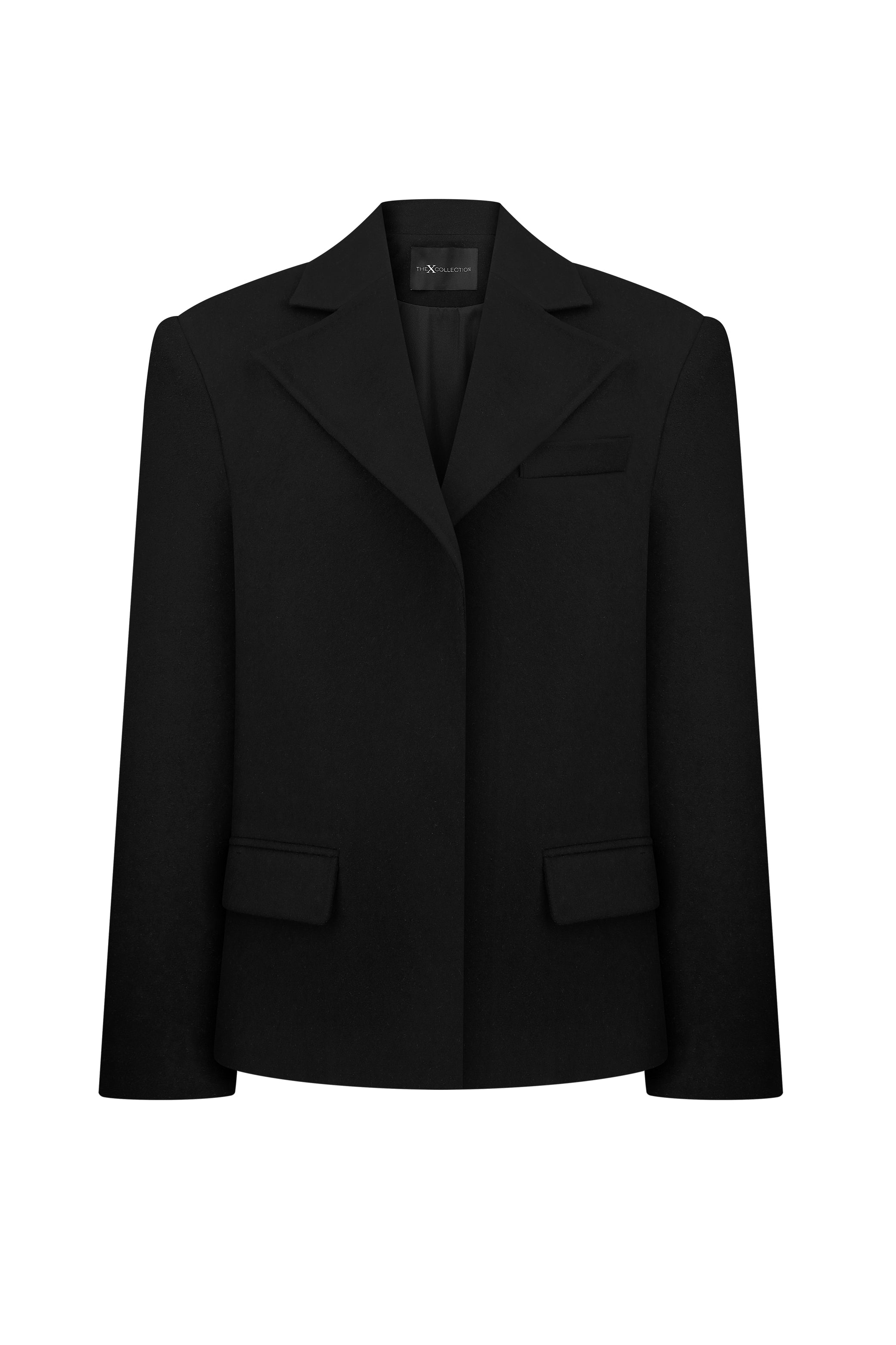 Tailored blazer with a structured silhouette and softly contoured waist. The model is 177 cm tall and wears size XS.
